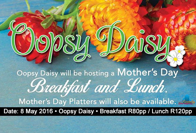 Oopsy Daisy in Allanstreet, will be hosting a breakfast and a 3 course lunch for Mother’s Day, 8 May 2016, at our shop. Reservations essential.